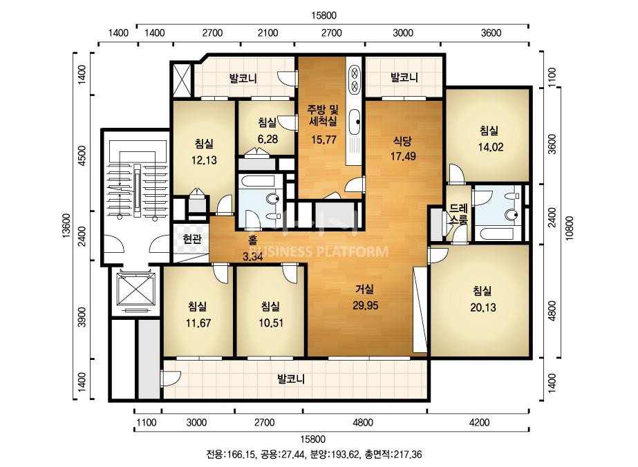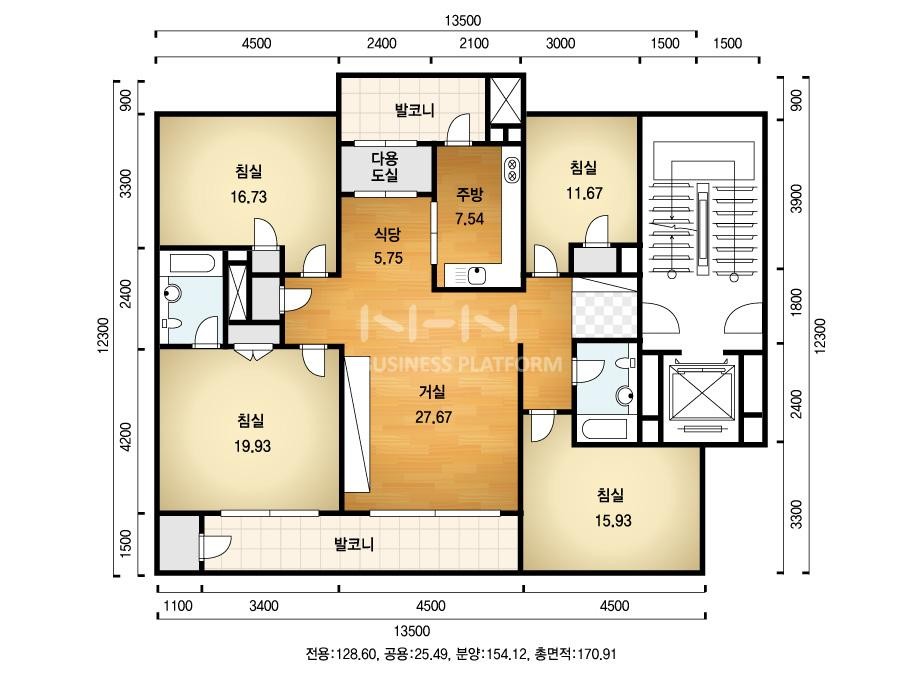 평형은 31평(95.4㎡), 47평(151.85㎡), 58평(194㎡) 형 3개 평형으로 구성되어 있습니다.
